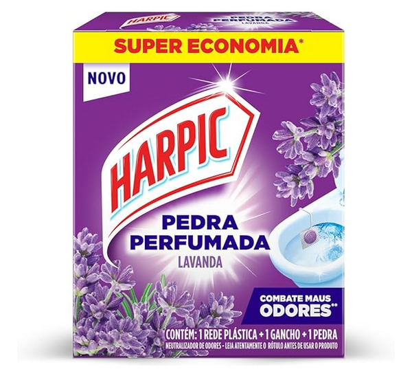Pedra Sanitária Lavanda e Bem-Estar Harpic Aroma Plus é uma pedra sanitária de alta qualidade que deixa o banheiro perfumado por muito mais tempo. Ela possui ação bacteriostática, higieniza e perfuma todo o vaso sanitário a cada fluxo de descarga, deixando um agradável perfume de limpeza