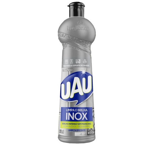 O Limpa e Brilha Inox UAU 500ml é um multiuso eficiente para superfícies de inox, como pias, eletrodomésticos e utensílios. Sua fórmula com álcool garante secagem rápida, brilho intenso e proteção contra manchas. Não precisa de enxágue e remove sujeiras e gorduras com facilidade, deixando o inox como novo.