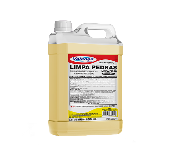 O Limpa Pedras 5L Valência é um limpador de alto desempenho indicado para pedras naturais como granito, miracema e são tomé. Remove crostas de lama, encardido e ferrugem, proporcionando limpeza profunda e uniforme. Não deve ser usado em cerâmicas, porcelanatos ou mármores. A aplicação exige diluição e uso de EPIs como luvas e óculos.